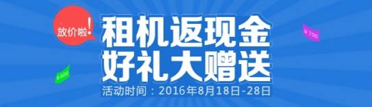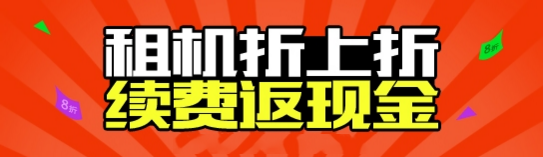 租机折上折,续费返现金正价租用任意一款服务器享受8折优惠,一次支付两个月费用在8折优惠价基础上再返款10%,一次支付三个月费用在8折优惠价基础上再返款20%...