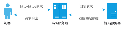 针对网站用户,主要采用反向代理方式,使访问请求经过高防服务器进行请求过滤,然后回源至源站服务器进行数据交换。
