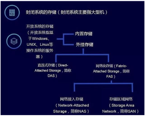 DAS,FAS存储都是属于开放系统存储里的外挂存储,分别是: