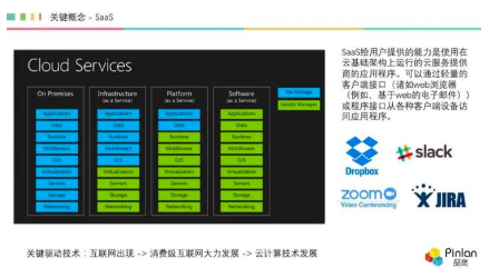 最典型的 SaaS 应用,如 Dropbox、Slack、ZOOM、JIRA,基本都是一打开网页,通过 web 就可以访问的程序和服务。