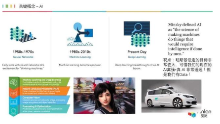 正如上图所示,明斯基定的目标非常宏大。可现在的 AI 技术即使到了第三个阶段,但离真 AI 还是非常遥远,幸运的是拥有庞大的数据。