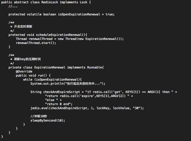 抽象类RedisLock增加一个boolean类型的属性isOpenExpirationRenewal,用来标识是否开启定时刷新过期时间。