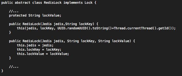 抽象类RedisLock增加lockValue字段,lockValue字段的默认值为UUID随机值假设当前线程ID。
