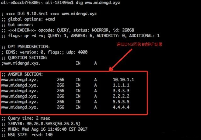 A、首先我们测试本地运营商递归DNS服务器是否生效。测试方法如下:
