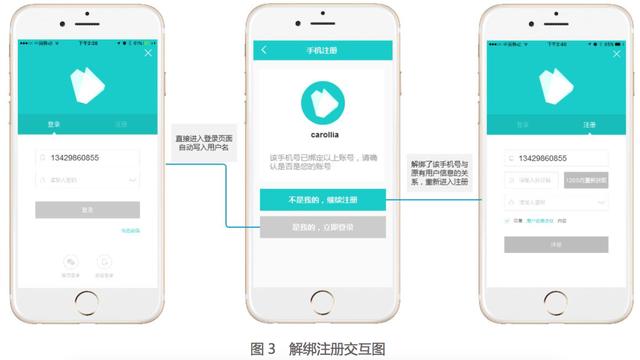 3.解决用户使用被别人注册过的手机号之后能够顺利建立新账号,同时解除新手机号与原来用户信息的绑定关系,避免用户数据被泄露。(新用户在使用新手机号注册时发现已经被注册过啦,有些产品设置快捷登录,这样得会会泄露之前用户的数据,还有些产品直接就不能登录,这些都会导致用户的流失。所以需要重新注册并且解除之前的绑定关系。)