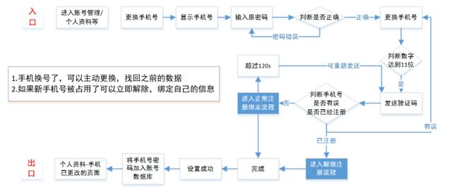 5.解决用户变更手机号等注册账号信息变更后,通过用户信息和绑定账号还能找回之前的数据。(很多时候老用户换了地方,换个套餐,或因为某些原因更换了手机是很正常的,但是不能因为换了手机号就无法再使用之前的数据,特别是有资金或者隐私的数据,必须得让用户可以主动更换手机号,或者很多时间用户忘了也能得通过第三方绑定账号,信息验证找回其个人信息。)