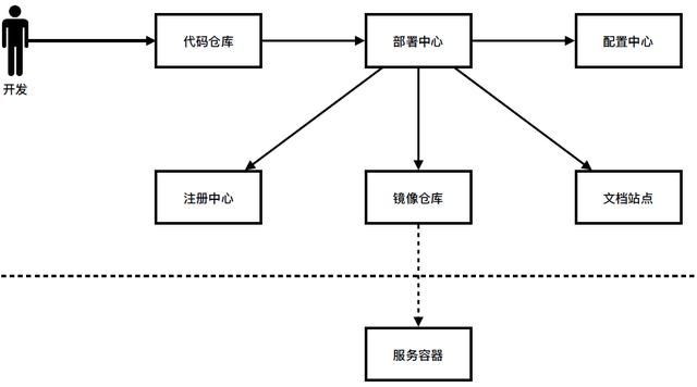 不仅如此,部署中心还需从配置中心获取对应运行环境的配置参数,并生成相应的配置文件,并将这些配置文件与应用程序一同复制到Docker镜像中,最后还需将此镜像上传到镜像仓库,以便后续可从镜像仓库中下载指定的镜像,从而运行相应的Docker容器。