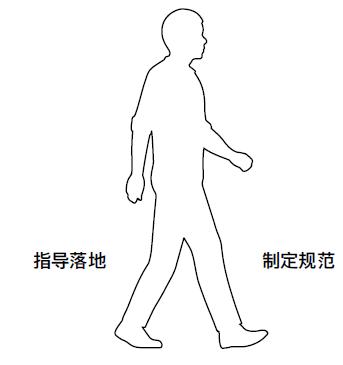 将架构工作做好犹如我们用两条腿走路一样,左腿迈出去表示“制定规范”,右腿跟上来表示“指导落地”,如图1-2所示。