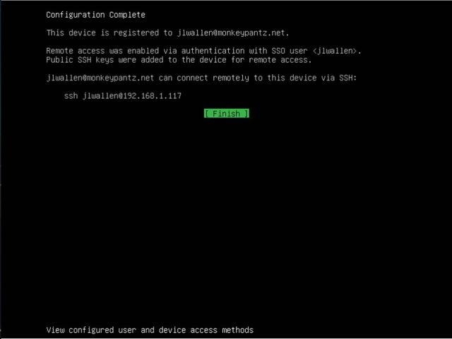 图 4:Ubuntu Core屏幕指示通过Ubuntu One用户启用远程访问。