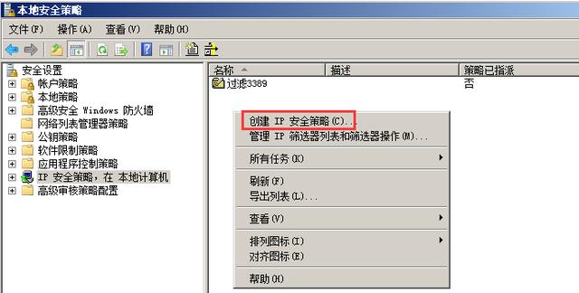 1、首先打开ip安全策略:控制面板–管理工具–本地安全策略–IP安全策略,在本地计算机上。在右侧空白处右击,选择创建IP安全策略