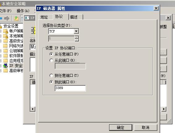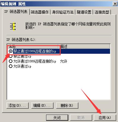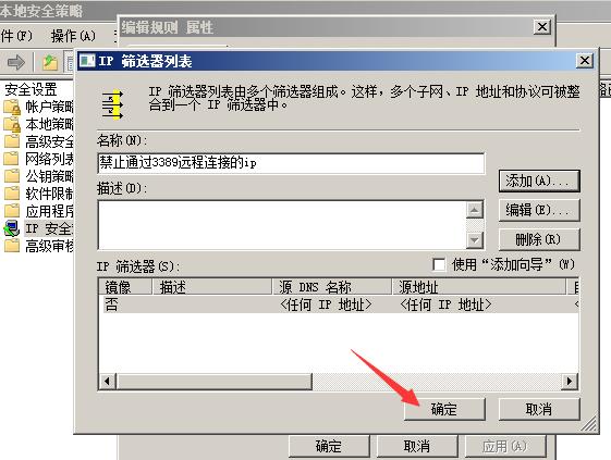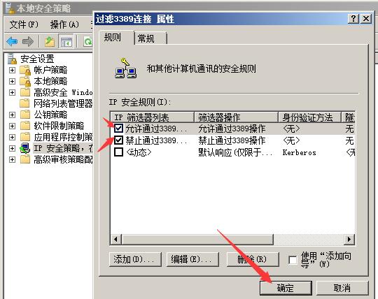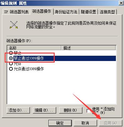 然后在添加一个禁止通过3389远程连接的ip规则。
