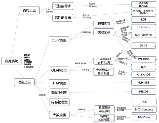 首先,我们可以看一下一张加入了 POLARDB 的阿里云数据库家族上云指导图: