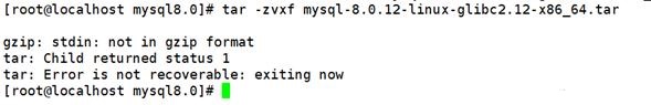 (1)tar -zvxf mysql-8.0.12-linux-glibc2.12-x86_64.tar 报错