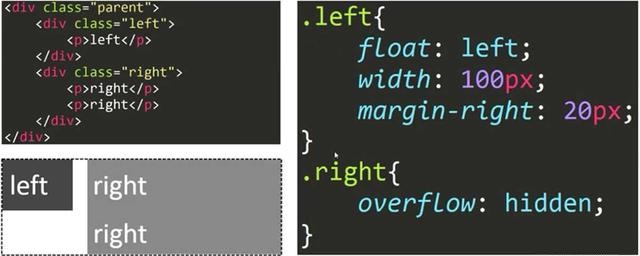 缺点:兼容性问题;解释:利用 BFC 模式使自适应部分不受 float 的影响;