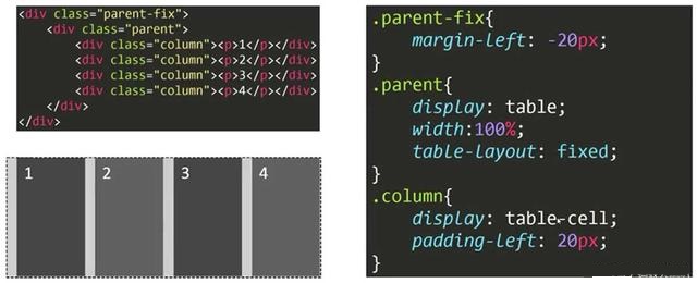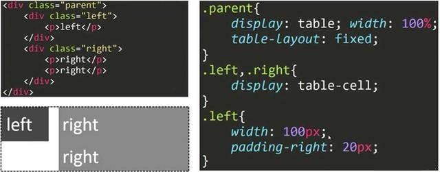 缺点:代码量较多;解释:display:table; 默认大小为内容大小;display:table-cell 不能设置 margin 属性;table-layout:fixed; 可以加速渲染,布局优先,固定表格布局中,水平布局仅取决于表格宽度、列宽度、表格边框宽度、单元格间距,而与单元格的内容无关。自动表格布局中,列的宽度是由列单元格中没有折行的最宽的内容设定的。;