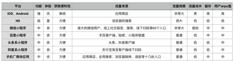 BAT、头条、手机厂商开发的小程序(动态App)分别有什么特性?