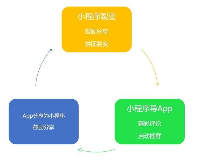 运营人员需要鼓励忠诚用户分享App或App里的内容给他的朋友,通过优质的内容或优惠,重新进入到社交体系。此时注意要分享为微信小程序,那么他的朋友点击后就成为了你的小程序用户,然后就是继续之前的套路,把其中的忠诚用户导入App。