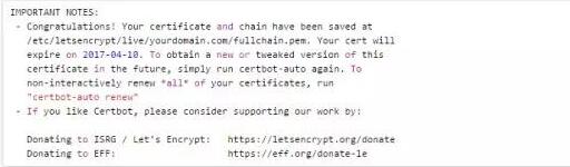 Let’s Encrypt 证书的有效期为90天,建议是每60天更新证书,以免有误差影响正常服务,证书自动更新可以通过运行certbot-auto来进行。