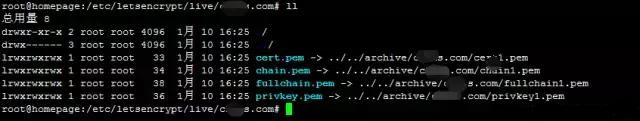 如果网站是多台服务器集群,也不需要再重新执行以上步骤,直接拷贝这个证书目录/etc/letsencrypt到集群中另外的服务器即可,注意这里面有4个软链接需要重建。