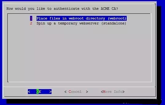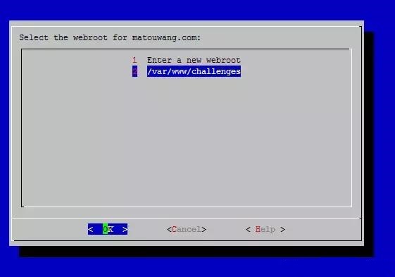 输入并选择自己的站点根目录,也可以自己指定一个目录,要确保能够访问到,获取证书过程中Let’s encrypt会在站点目录下随机生成一个文件,并在外部访问,以验证你是否对这个域名有所有权。
