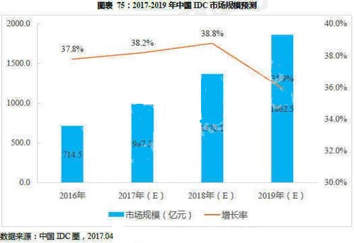未来几年,中国IDC市场规模依然会呈现上升趋势,根据某行业机构预测2018年,中国IDC市场规模将达到1400亿元,增速达到39.6%,2019年,有望达到1900亿元!