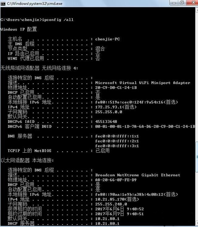 这时候你上拉或者下拉滚动条就可以看到当前网络的各种信息了,也可以看到DNS了,得到了DNS填进去就完成了。完美解决高效刷新DNS缓存,解决网页无法访问。