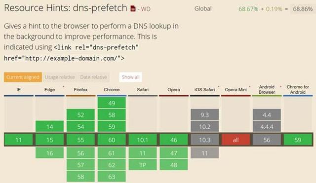 除了iOS Safari,Opera Mini和Android Browser之外,所有主流浏览器都支持 DNS预取 。