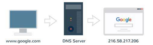 当您在地址栏中输入Google.com时,您的ISP会执行DNS查询以请求与该域名关联的域名服务器。然后到服务器的幕后完成到IP地址的映射,然后允许您使用域名访问它。没有DNS,你必须输入类似于216.58.217.206的内容才能访问Google。这不是很有趣!