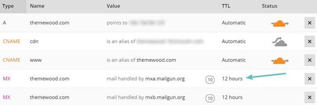 30分钟到1小时通常是最常用的TTL值。但是,有些设置的TTL非常低,以便进行快速更新。Cloudflare是一个例子,如果您使用自动TTL,则默认为5分钟。查看不同类型的DNS记录并根据其更改的频率对其进行相应设置也是有益的。这里是一个例子: