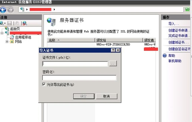 7、双击打开后,选择导入,导入我们刚刚解压得到的pfx文件,这个pfx文件就是你需要部署域名的那个文件。
