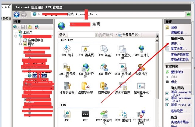 9、现在我们去找到我们需要部署的网站,在服务器网站栏里,双击绑定。