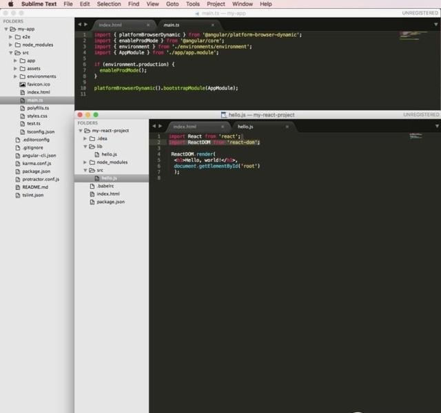 Sublime Text是一个高度可配置和可扩展的文本编辑器,用于代码,标记等。有超过50种语法,包括JavaScript,并可以使用Sublime软件包和TextMate语法定义进行扩展。我能够通过一些按键来安装Babel(React)和TypeScript(Angular)的语法和支持。