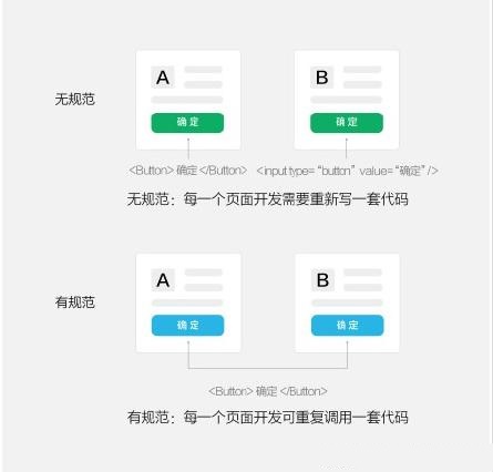 无规范则每个页面都需要重新写一套CSS代码随着页面越多,工作量越大影响项目进度,代码也会越来越臃肿。而如果有规范则只需调用同一个css就可以了
