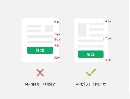 行间距能表明内容之间的层级和从属关系,凌乱复杂的行间距会对用户认知造成较大的困扰。一个页面中,最多使用5种行间距,能少用就尽量少用