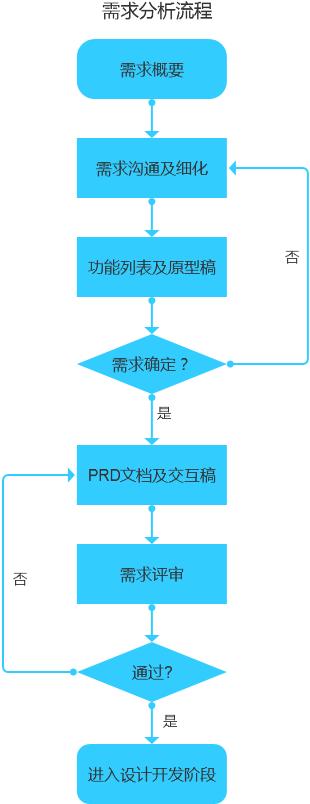 产品立项阶段亦称为准备阶段,该阶段主要基于需求大纲通过针对性的市场调研、用户访谈及竞品分析,尽可能的评估产品的核心功能,方向定位、目标用户群、成本投入和市场前景。在决策层评估通过的条件下,组建虚拟开发小组,协调资源,明确项目负责人及产品计划上线时间等事项。若为甲方需求的项目,可省略市场调研及商业价值评估的相关内容。