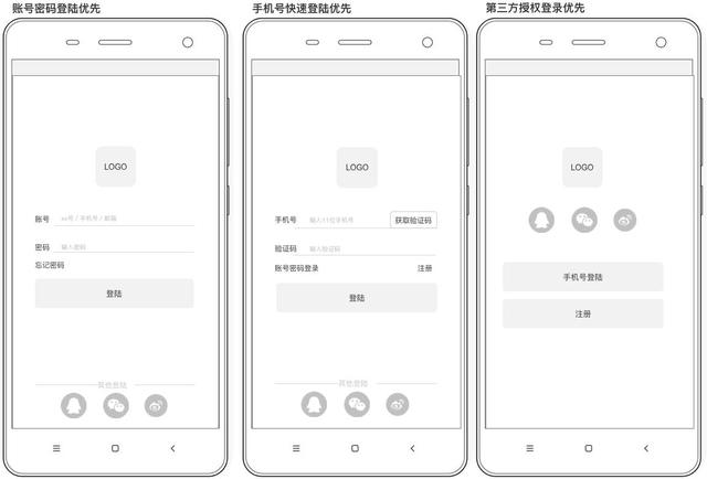 登陆注册主流设计有三种(原型如下)