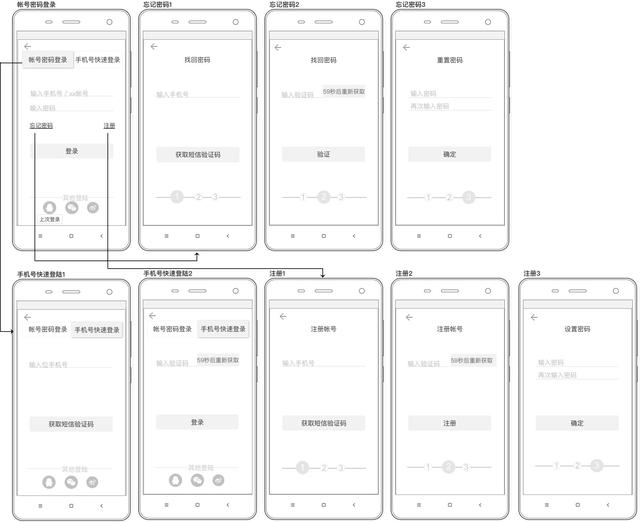交互细节上又可以延伸用户进行注册或登录需要几个步骤?这些步骤是在一个页面上承载还是一步一个页面以多页面去承载?