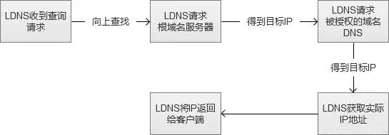图中的“向上寻找”,实际过程是LDNS(Local DNS)先向根域名服务(Root Name Server)获取到顶级根的Name Server(例如.com的),然后得到指定域名的授权DNS,然后再获得实际服务器IP。