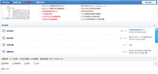 网站的制作采用discuz程序制作,整体布局清晰简洁,给人一种干净清爽之感,但对于优化来说,可以说这个网站所能提供的价值内容少之又少,里面的会员大多都是自己人进行顶贴,因为作为一个需要建站的客户,在时间要求上都非常忙,不会花费时间去注册并回复,下面从几个小细节来说说网站布局所出现的问题及解决方法。
