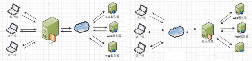 这里我给来2张图,对正向代理与反响代理做个诠释,具体细节,大家可以翻阅下资料。