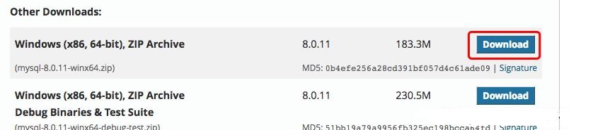 Windows 上安装 MySQL 相对来说会较为简单,地那就链接 https://cdn.mysql.com//Downloads/MySQL-8.0/mysql-8.0.11-winx64.zip 下载 zip 包。