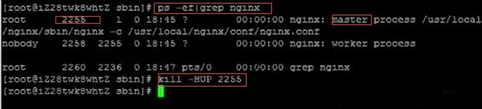 方法二:查找当前nginx进程号,然后输入命令:kill -HUP 进程号 实现重启nginx服务