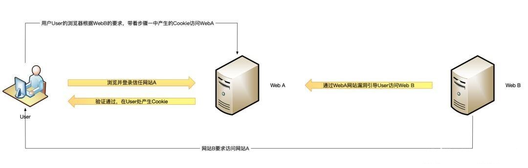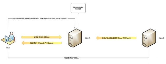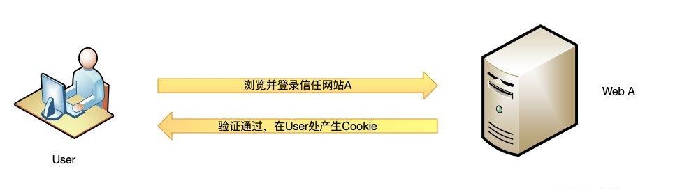 1.用户登录、浏览并信任正规网站WebA,同时,WebA通过用户的验证并在用户的浏览器中产生Cookie。