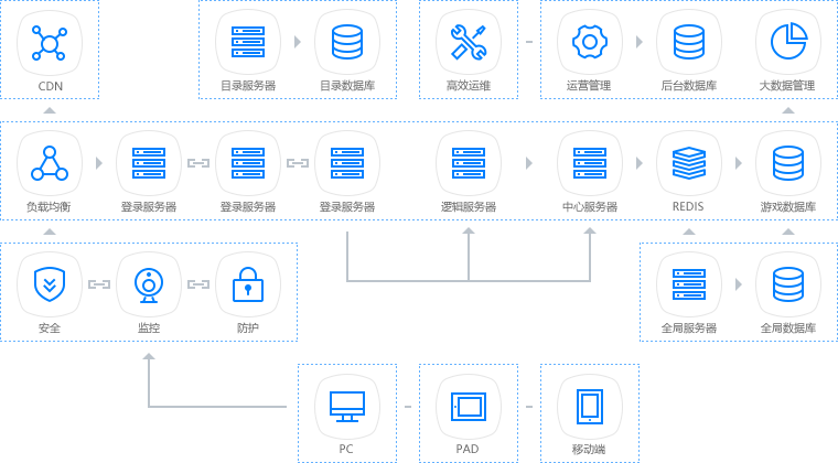 创联网络游戏云服务,从构建基础设施到游戏上线到后期精细化运营,创联网络服务涵盖项目整个发展周期。创联网络拥有业内先进的辽宁双线高防节点以及国内优质的BGP多线网络资源,高效稳定的云服务器、云数据库以及专业的安全服务,为用户提供贴心全面的的游戏云解决方案,筑造游戏稳定运行的基石。