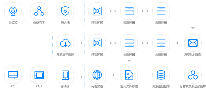 电商云解决方案具备高弹性可扩展性、成本比传统IT架构节约70%以上、效率高、运维维护成本低等特点,帮助电商企业快速实现平台搭建、节约成本、应对高业务并发、强化安全防护能力等目标,助力电商用户快速实现互联网金融创新。